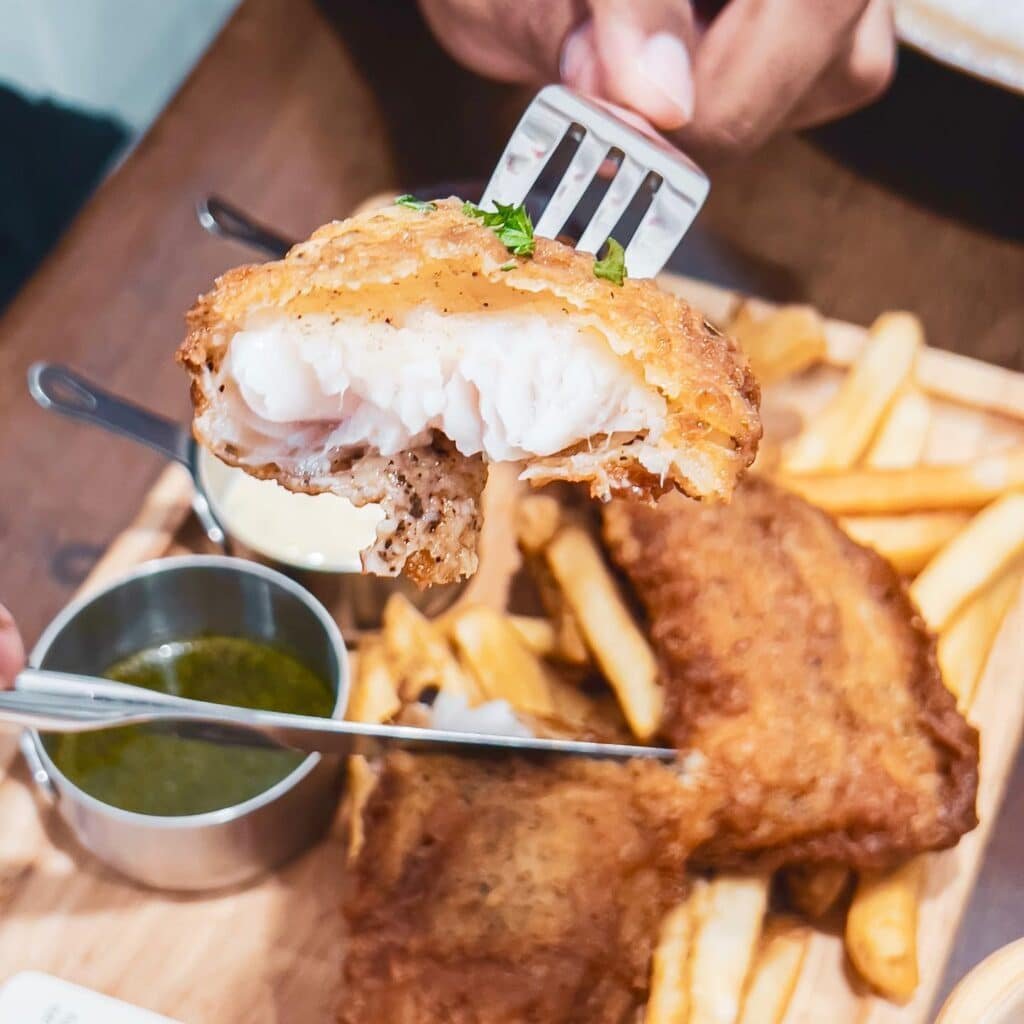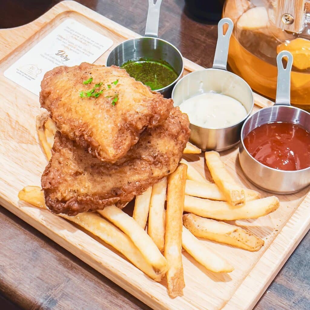 这不仅仅是Fish & Chips,这是一次味蕾的冒险之旅!那Dory Fish简直像是古代埃及的金字塔:外表金黄闪亮,里面藏着珍稀的秘密。而那香煎Barramundi,则像是大海中的女神赠予的馈赠,每一口都是与大海的热烈拥抱。