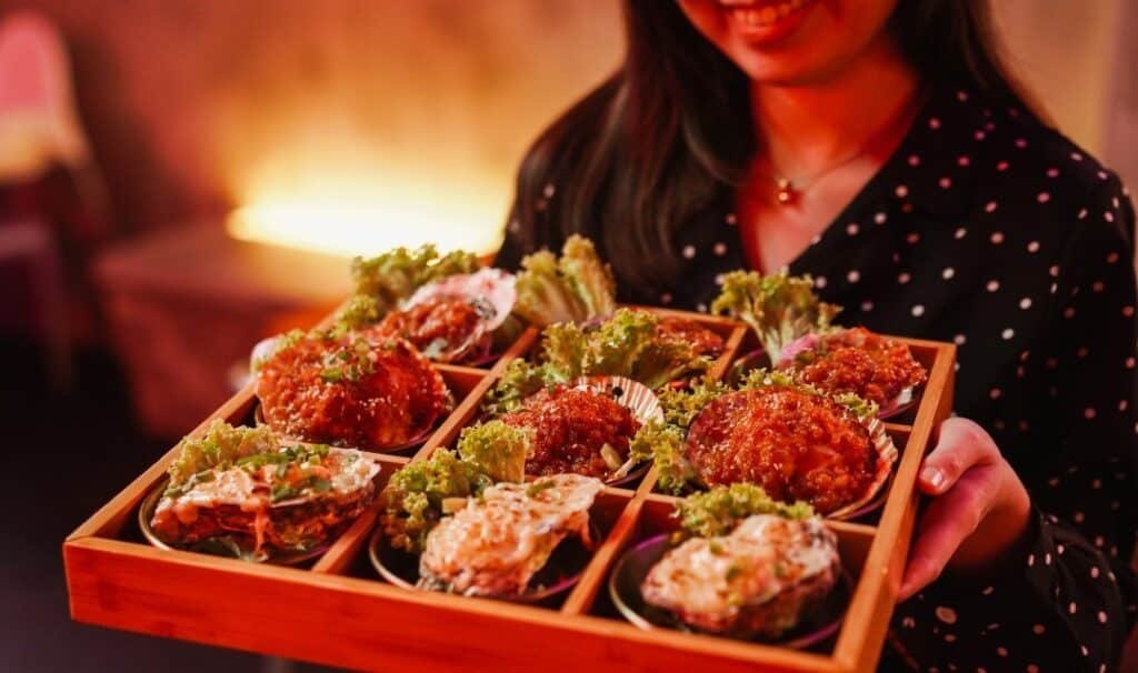 在「烤铺」,你可以尽情享受多种独特的炝拌菜,如炝拌土豆丝、炝拌鸡蛋干等。同时,还有炙烧芝士生蚝、烤牛骨髓等高颜值美食,这些都是夜晚的绝佳选择。而圣诞季的特色装饰和节日菜单如香烤童子鸡、战斧牛排,更为这个美味的地方增添了欢乐的气氛。