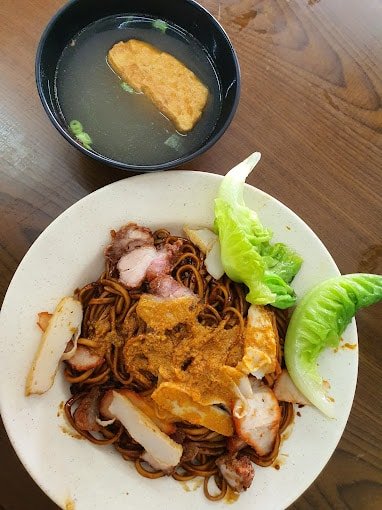 别被表面上的普通干捞面所迷惑,这碗猴子面可是隐藏着无穷美味的秘密!金黄的咖喱汁淋在滑嫩的面上,搅拌后,咸甜的酱汁与咖喱完美融合,瞬间点燃你的味蕾。但这只是开始,老板特制的Q弹老鼠粉、丰盛的叉烧、炸肉,都融入其中,每一口都是对古早味的完美致敬。更惊喜的是,面里还有酿豆腐、客家炸肉、叉烧和鱼饼,简直就是美味的宝藏!